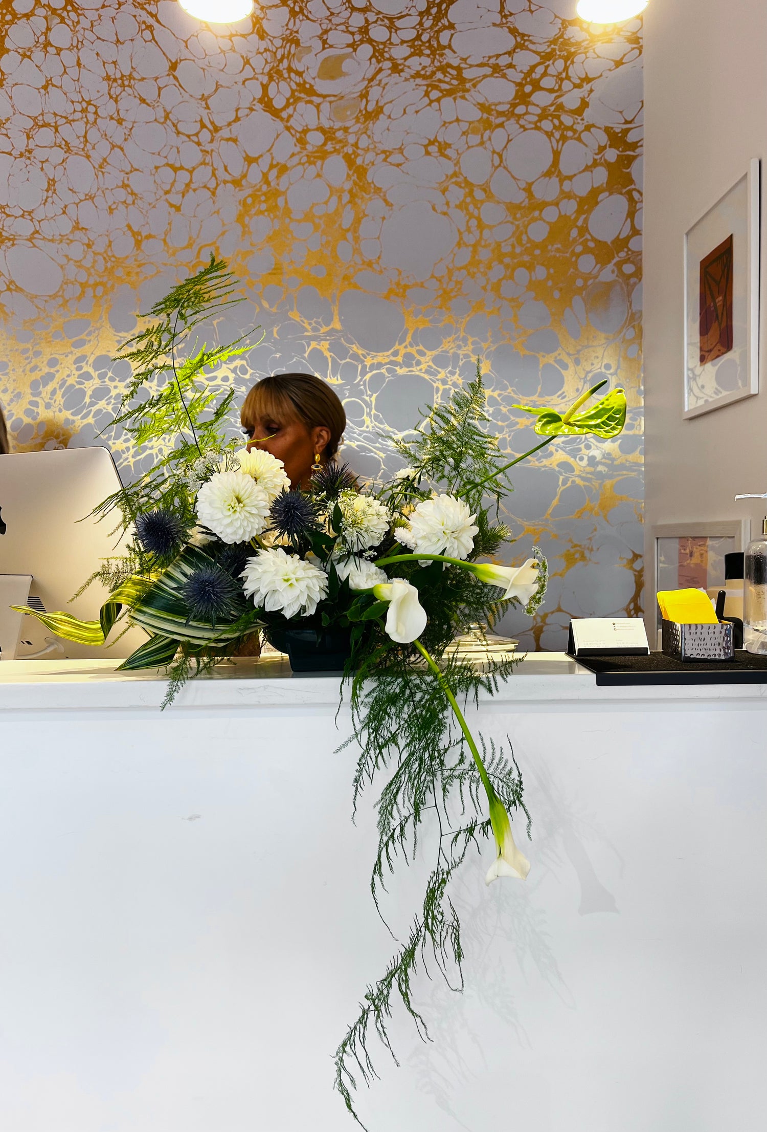 Front desk arrangement at Fabio Scalia Salon for a media show